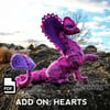 This Add-on Pattern includes instruction for Heart shaped tail ornamentation, heart shaped neck frills, 3 types of lacey back scales, heart shaped belly plate, heart shaped eye and leg ornamentation, eyelids, and heart wings. This Add-on Pattern requires that you use it with the original Dragon pattern as it does not include instruction on how to create the rest of the body of the dragon.